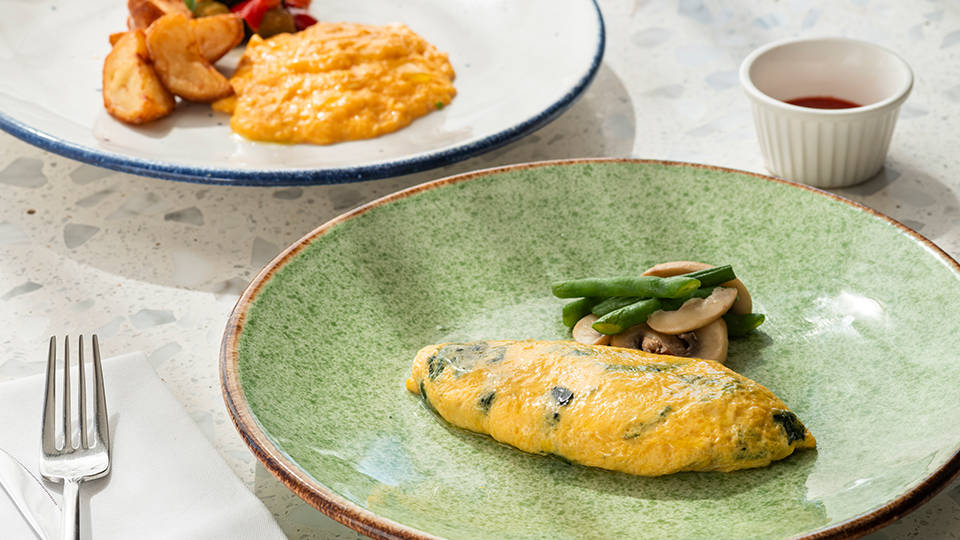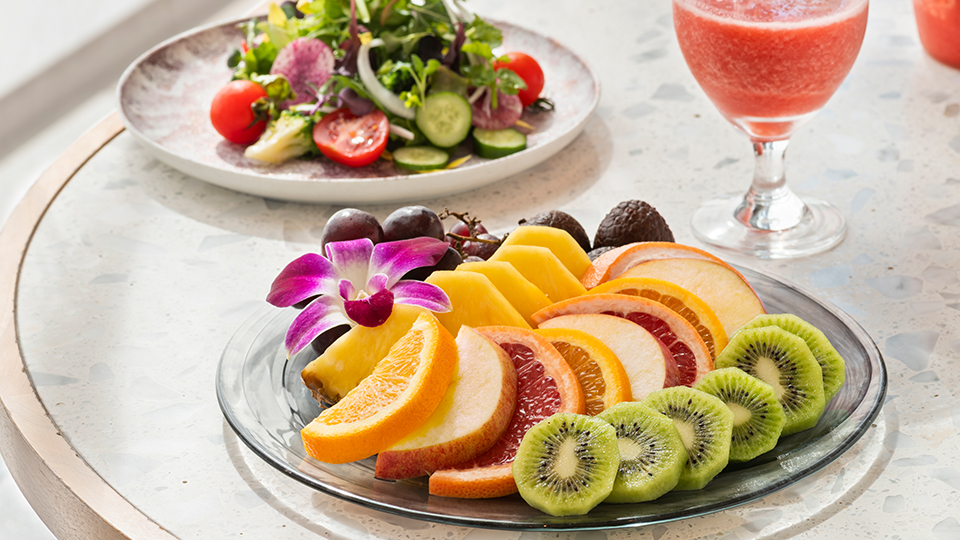 以健康開啟嶄新一天。可以選擇現點現做的歐姆蛋或全麥法式薄餅作為主食,搭配新鮮蔬菜與水果,享受一份營養均衡的早餐拼盤。