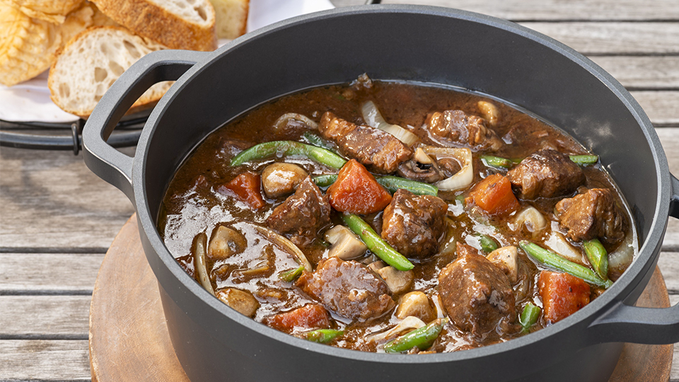일본산 소고기의 감칠맛과 레드 와인의 향이 근사한 아침을 연출합니다. 바게트나 포카치아 등 수제 빵을 곁들이면 소스의 깊은 맛과 밀의 고소함이 어우러져 평온한 아침에 어울리는 풍요로운 시간이 펼쳐집니다.