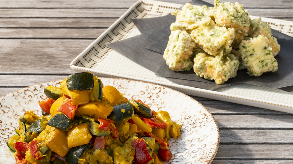 다양한 채소를 향신료로 가볍게 조리하여 완성한 사브지와 겉은 바삭하고 고소하게, 속은 부드럽게 튀겨낸 김가루 두부튀김. 자극적이지 않아 편안한 일본의 맛을 전 세계 고객님들께 선사합니다.
