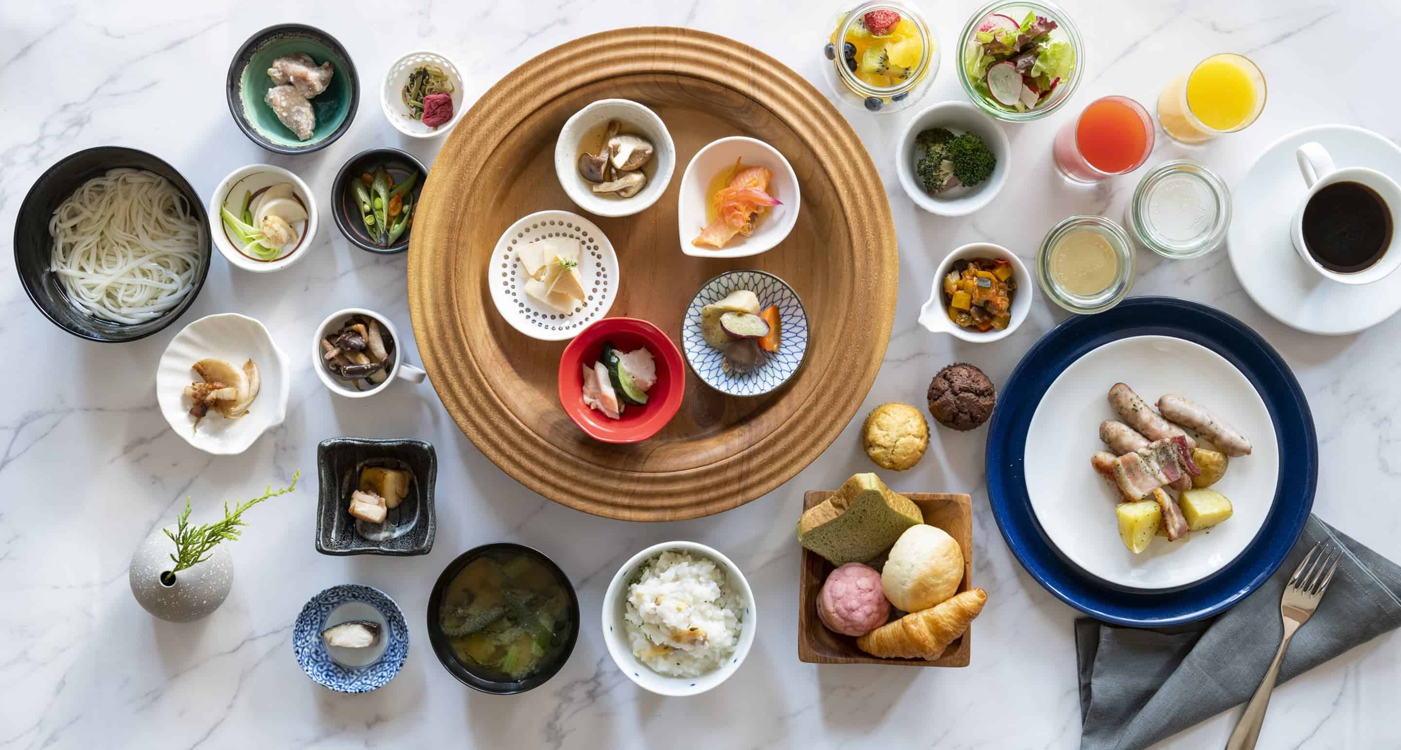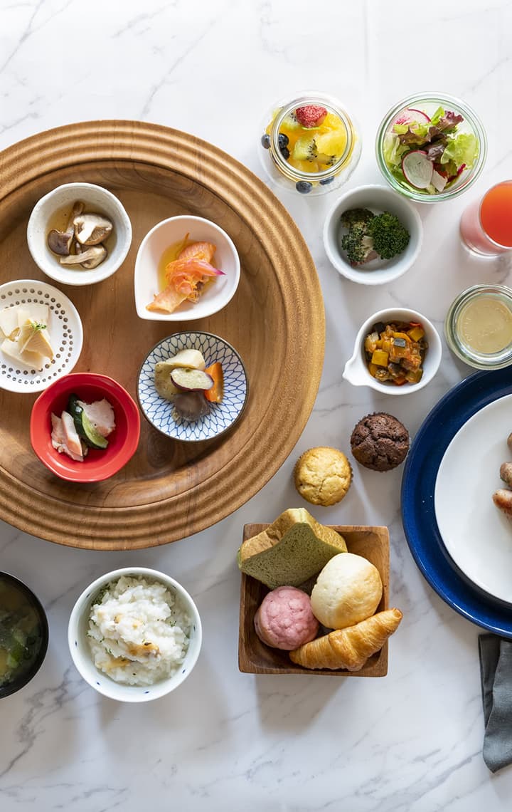 Cafe & Restaurant “CHOJIYA KASHIWA-NO-HA”에서 울창한 녹음을 바라보며 따스한 햇살을 만끽하세요. 신선한 현지 채소를 중심으로 건강하고 균형 잡힌 일본식 및 서양식 조식을 제공하여 몸과 마음을 깨웁니다. 고객의 니즈에 맞춘 메뉴로 편안하게 식사를 즐기세요.