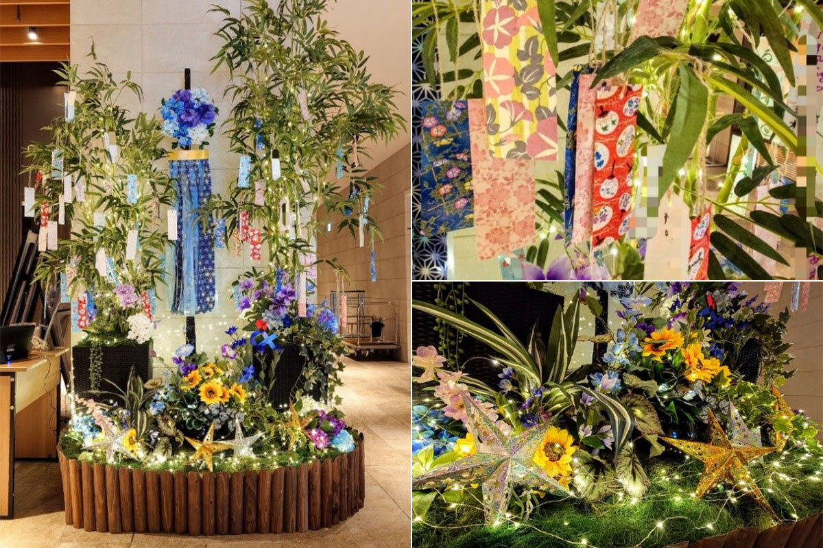 三井ガーデンホテル柏の葉では2025年6月18日(水)から7月8日(火)までの期間、ホテルロビーに七夕飾りを設置いたします。今年度は、織姫と彦星を挟んだ天の川の造形も施されております。また今年度も昨年同様、チャリティーイベントとして障害者施設の方が作ってくださる短冊を準備しております。三井ガーデンホテル柏の葉にお越しの際は、ぜひご参加くださいませ。
