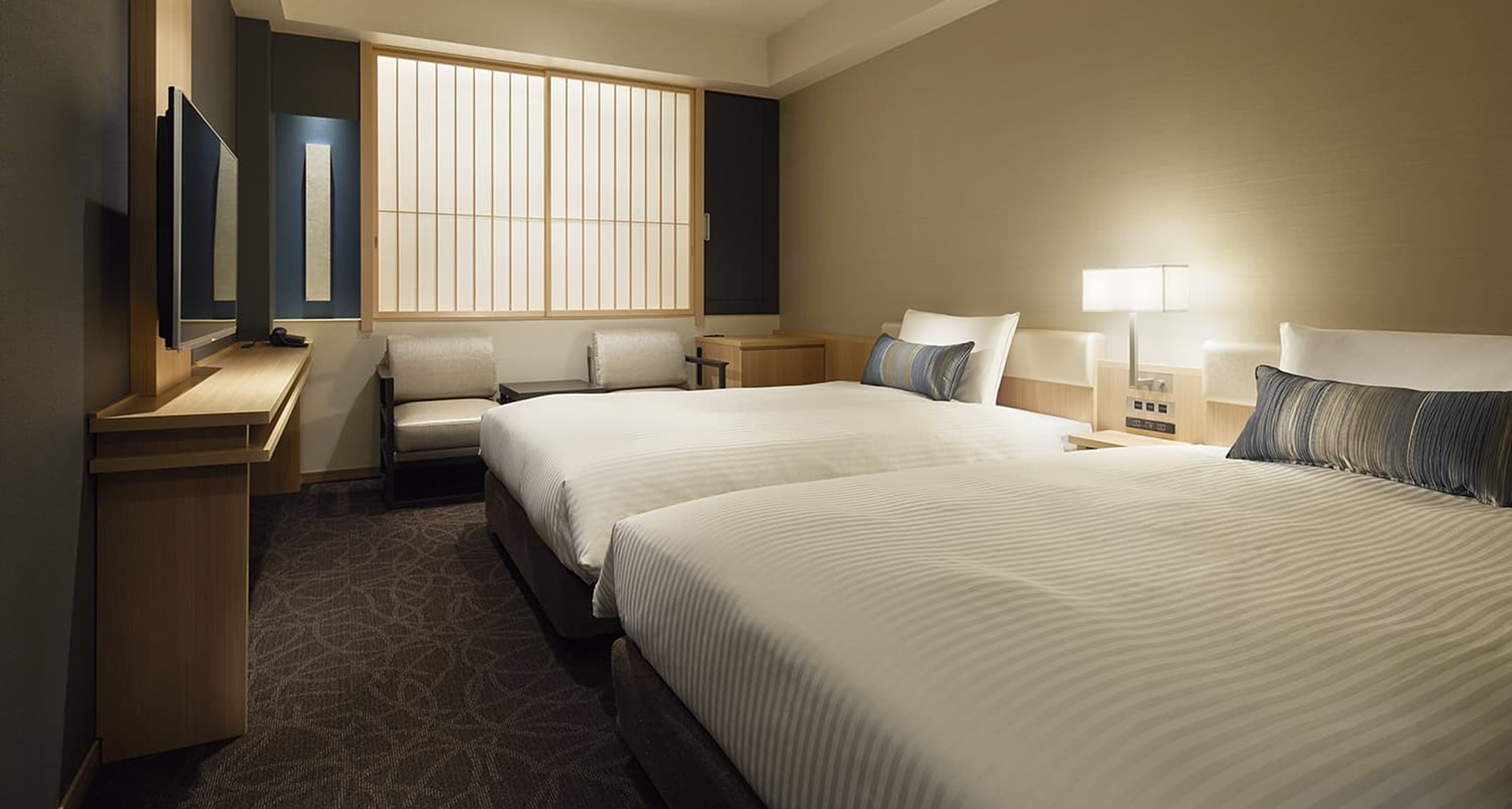 유서 깊은 교토의 중심부에 위치한 세련된 휴식처, 미쓰이 가든 호텔 교토 신마치 벳테에 오신 것을 환영합니다. 전통적인 마치야(일본 전통 상가 주택)의 정취를 재현한 공간입니다. 안으로 들어가면 고풍스러운 입구와 가레산스이(물을 사용하지 않고 돌·모래·자갈로 자연 풍경을 표현한 일본식 정원) 인테리어로 평온함을 느낄 수 있습니다. 모두 둘러본 후에는 무료 인공탄산 대욕장에서 여행의 피로를 풀어보세요. 유서 깊은 신마치도리 거리의 평온함을 누리면서도 주요 교통시설이 도보권 내에 있어 이동도 편리합니다.