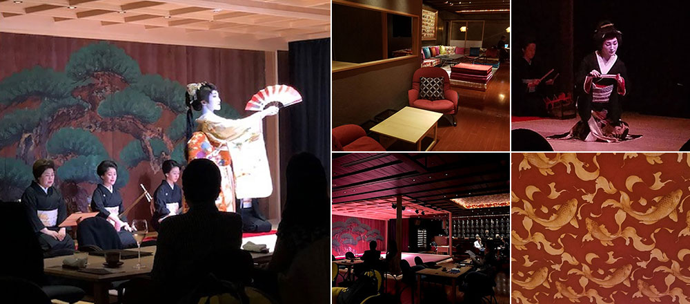 第二个魅力是美食。如果提前预订,您还可以在欣赏表演的同时享用美食。菜单也十分讲究,您可以品尝到江户前寿司、福寿园的茶叶以及京都老牌的甜点等美味佳肴,带来一场味蕾上的享受。此外,店内还使用具有350年以上历史的高档餐具。