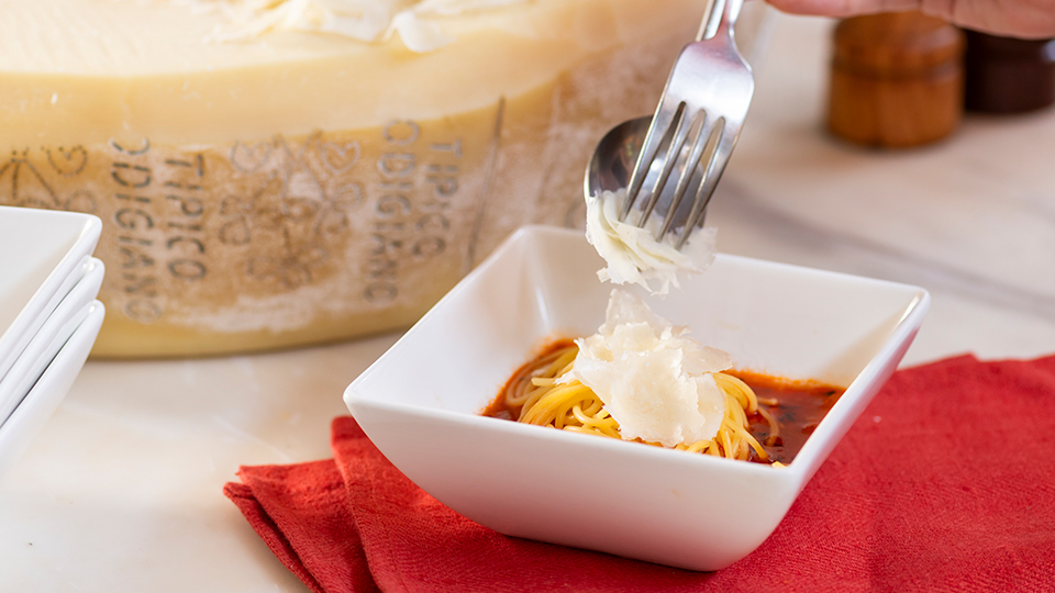 ホールチーズから贅沢に削り出した香り高いチーズを、パスタや生ハム、サラダ、パンなどお好みに合わせて自由にカスタマイズ。濃厚な旨みと芳醇な香りが、素材の味を一層引き立てます。