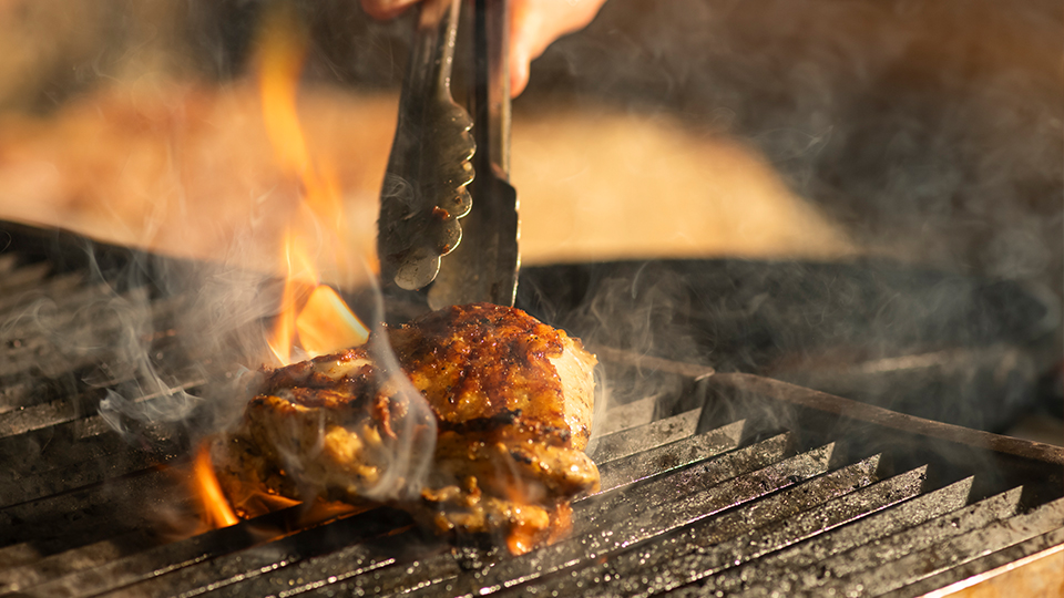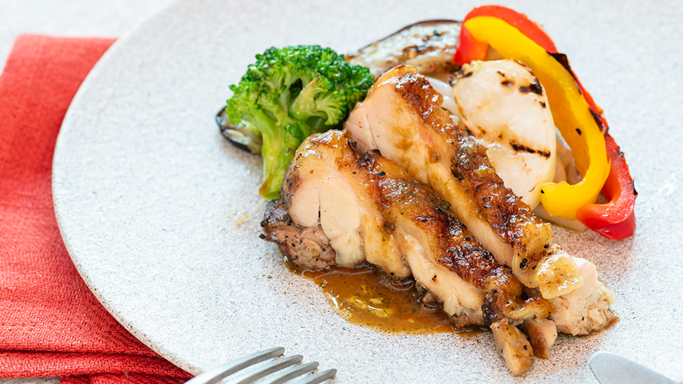 その場で丁寧に焼き上げる、肉厚なチキングリル。焼きたてならではの香ばしい香りと、静かに響く焼き音が、朝のひとときを彩ります。オリジナルステーキソースとともに、お召し上がりください。